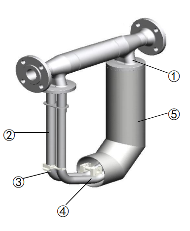 - Measuring tube (vibrating tube): It consists of two parallel curved tubes.